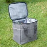 This Large Premium Cooler Bag is made from premium 300D poly-canvas material with 5mm EPE foam insulation to keep drink and food cool and fresh encased in a water-resistant heavy PEVA vinyl inner liner. It features a heavy-duty zip closure lid with 2 zips strong durable nylon webbing handles with a Velcro cuff. It has a large front slip pouch and a mesh pocket on each side. Capacity 17L.