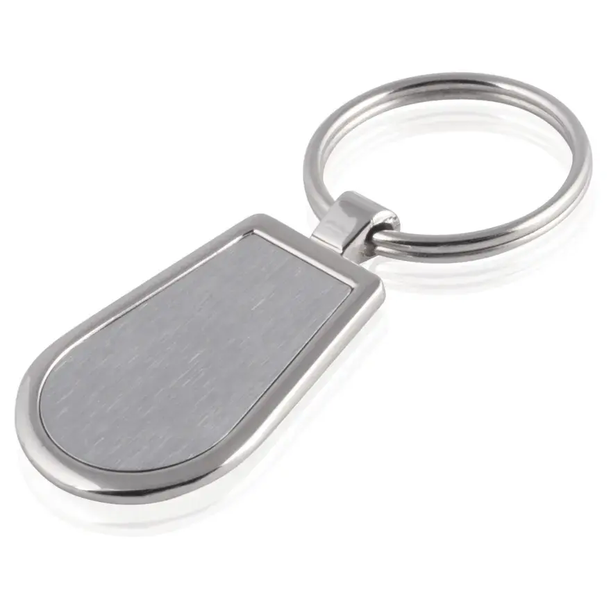 Custom Keyring Square Metal Leather Look - Black/Silver