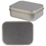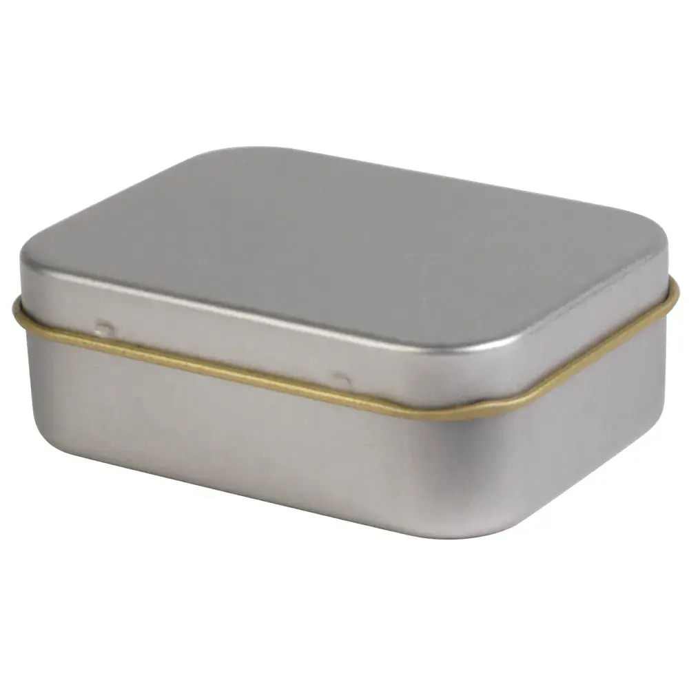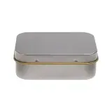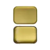 2 piece silver rectangular tin with gold tin lining and rolled rim.