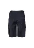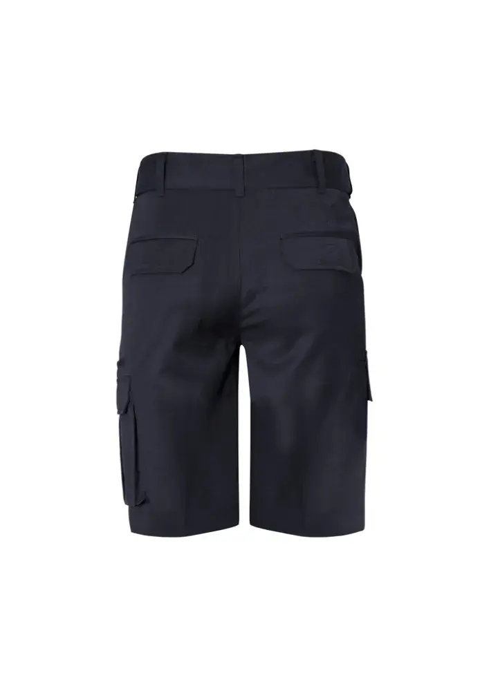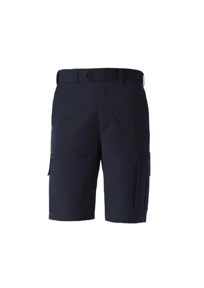 Flat front with side pockets, 2 rear pockets, 1 side cargo pocket and 1 side welt pocket