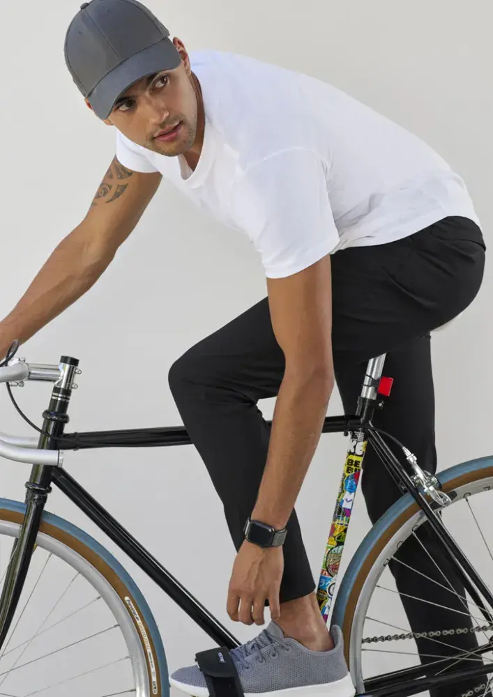 Tapered, 4-way stretch streamline fit