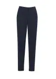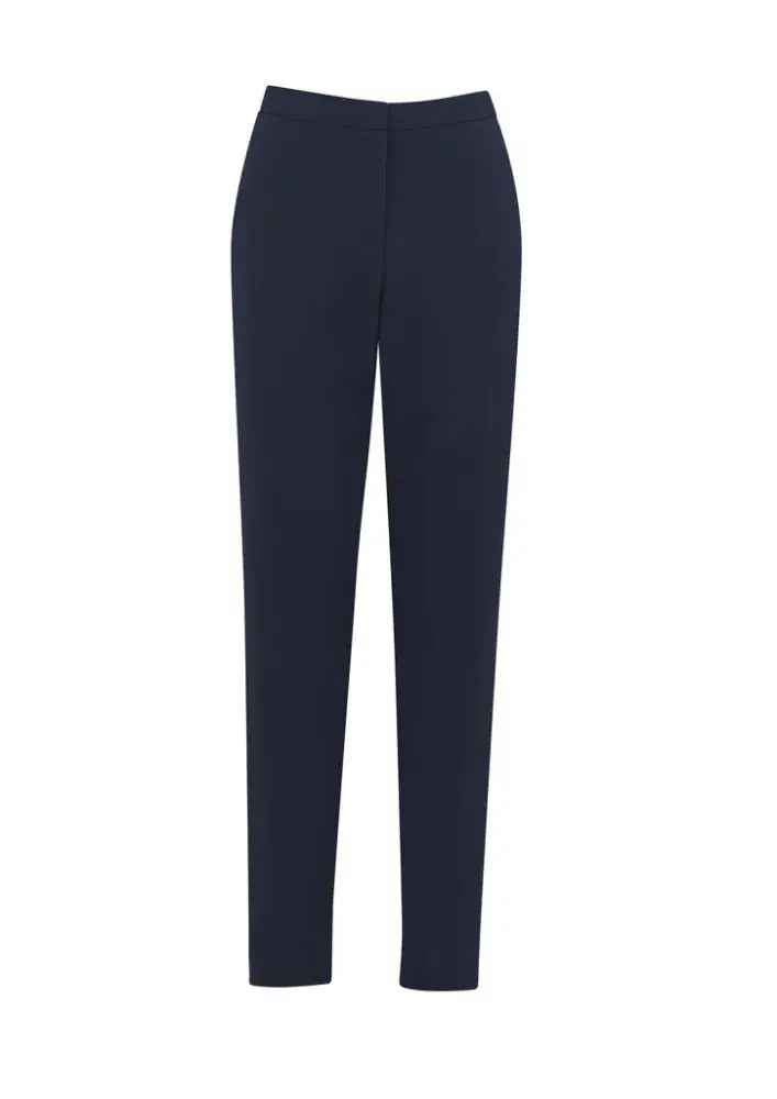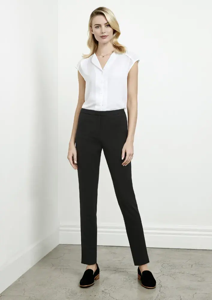 No side pockets or belt loops creates a clean sleek appearance at waist and hips