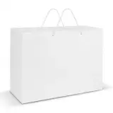 Extra-large carry bag with strong woven polypropylene rope handles. It is manufactured from gloss laminated 157gsm art paper.