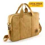 New York Kraft Paper Business Satchel combines durability functionality and style making it a suitable companion for professionals. The use of German 0.55mm washable kraft paper gives it a unique and modern look while the PU webbing handle and gold metal zipper puller add a touch of elegance. The interior padded laptop compartment provides a secure space for carrying electronic devices and the additional zipper and open pockets offer organization for small essentials. The adjustable and removable shoulder strap ensures comfort and convenience while carrying the bag on the go. This work bag is designed to cater to the needs of professionals looking for a practical and stylish solution for their daily work requirements. Note that this item comes stock with the "Rockside" brand on front leather patch.