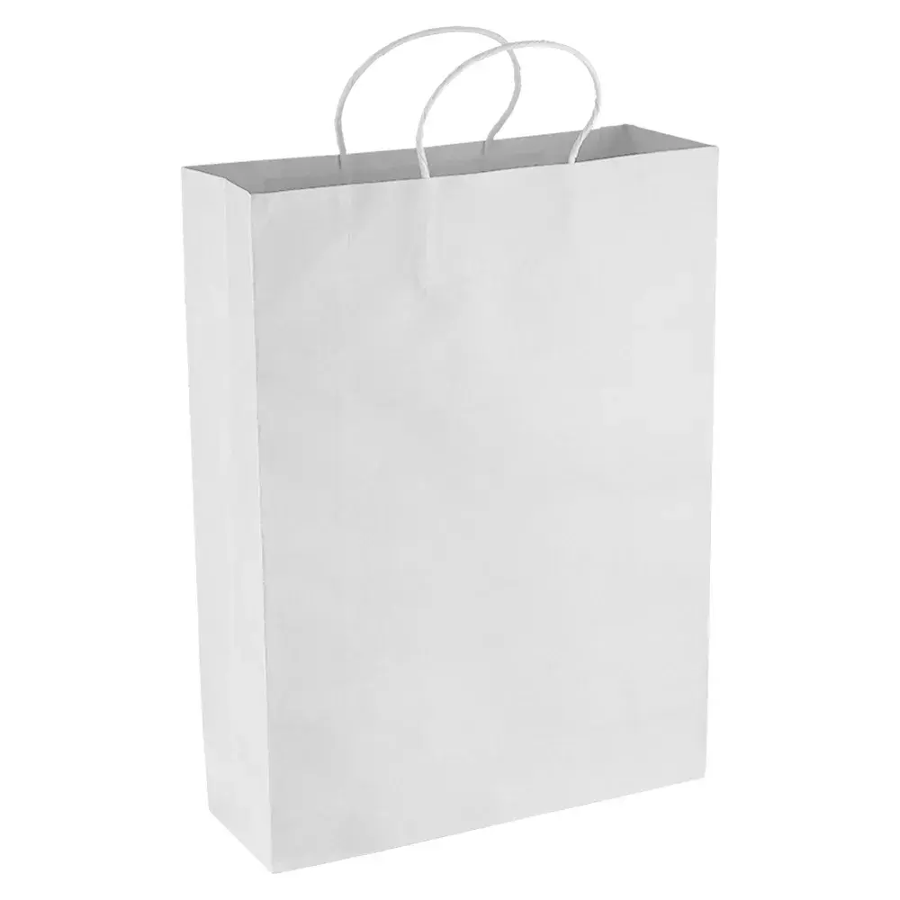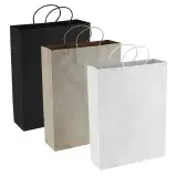Standard size Eco friendly paper bags made of 150gsm kraft paper with gussets and strong paper rope handles. A popular eco promotional bag.
