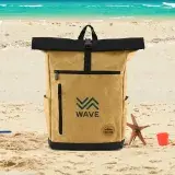 Seaside Kraft Paper Laptop Backpack is made of German 0.55mm washable kraft paper with canvas lining it combines durability functionality and style making it suitable for various purposes including work school travel or daily use. Along with the unique black canvas top adds a distinctive touch to the backpack's design. The multiple pockets and compartments provide ample space for organizing essentials while the comfortable back panel and adjustable shoulder straps enhance overall wearability. The addition of side water bottle pockets makes it convenient to carry hydration during daily activities or travel. Note that this item comes stock with the "Rockside" brand on front leather patch.