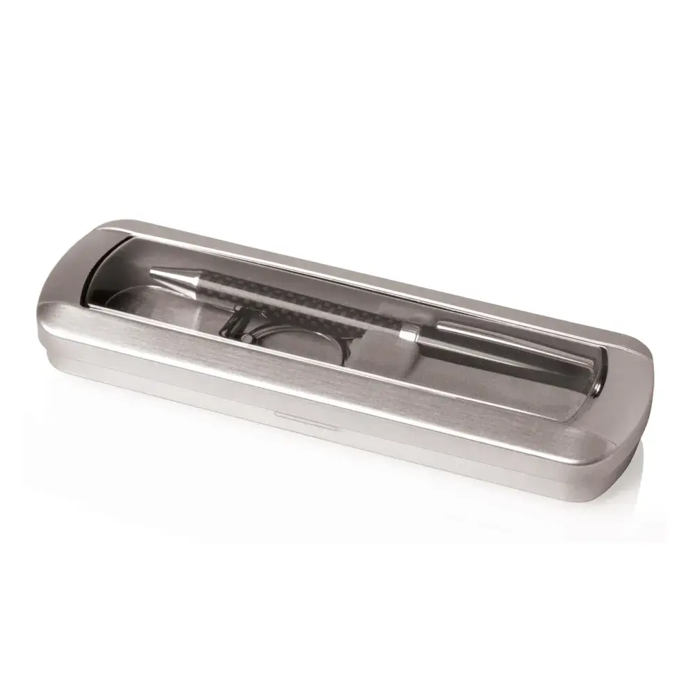 The Pen and Keyring Giftset Box is a great choice for a combined promotion. Choose from our wide range of pens and keyrings (not included) and present them in this elegant silver metal gift box. Can be printed or laser engraved with your client's logo for the perfect professional finish.