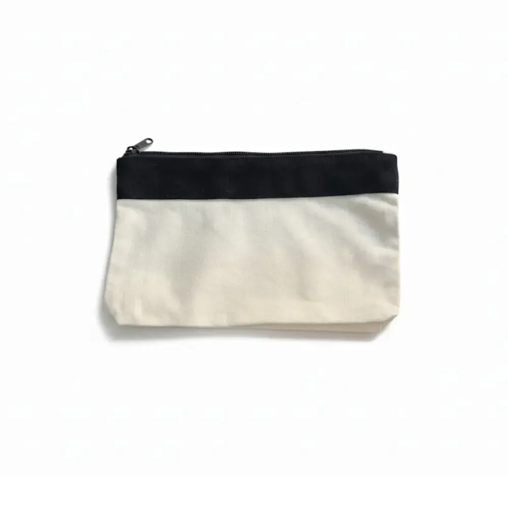Durable canvas construction for long-lasting use. | Coloured accent panel around the top edge. | Smooth zippered closure for secure storage. | Compact, portable size. | Ideal for students, professionals, or brand giveaways.