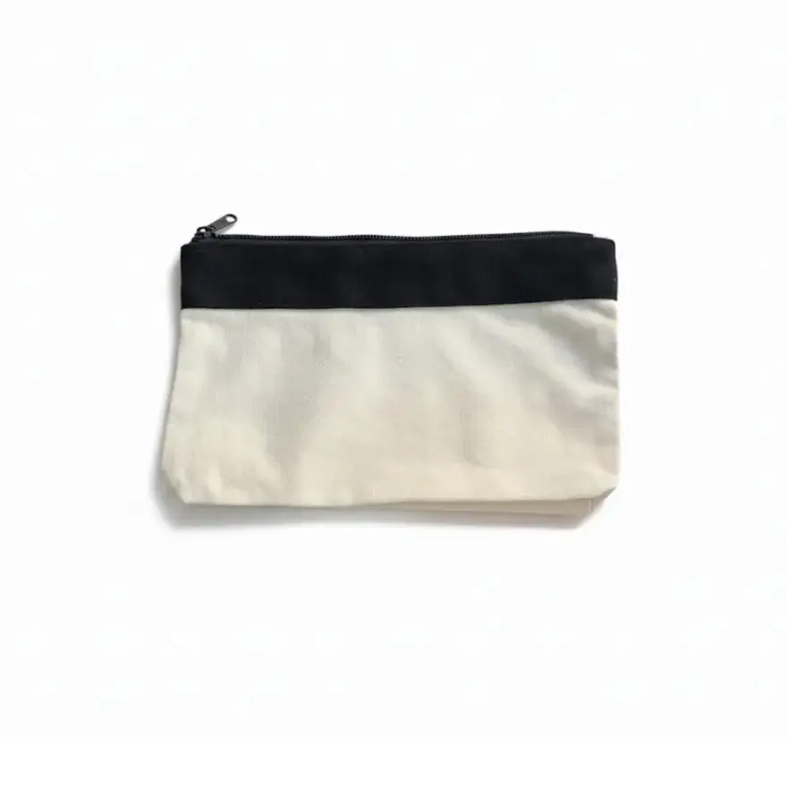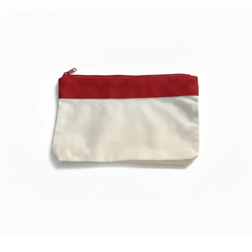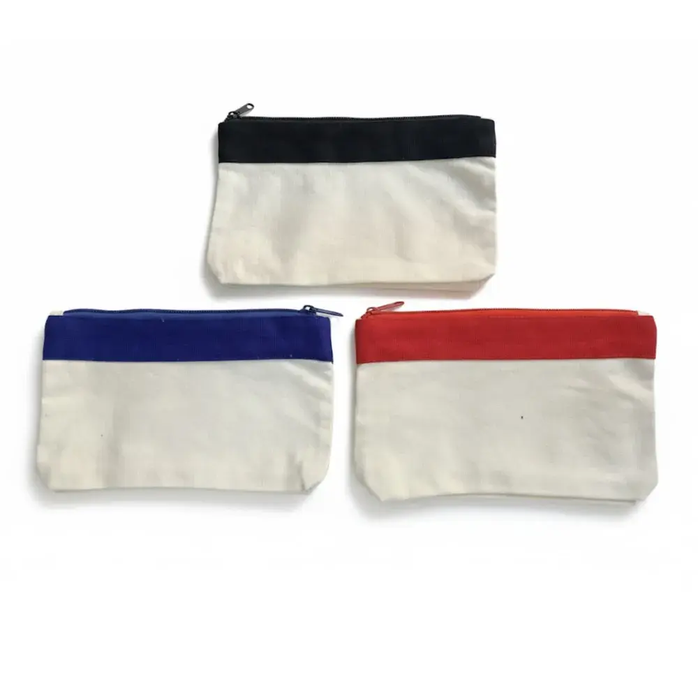 Durable canvas construction for long-lasting use. | Coloured accent panel around the top edge. | Smooth zippered closure for secure storage. | Compact, portable size. | Ideal for students, professionals, or brand giveaways.