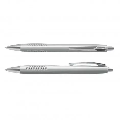 Custom Plastic Pen Ballpoint Rubberised Grip Silver Cara