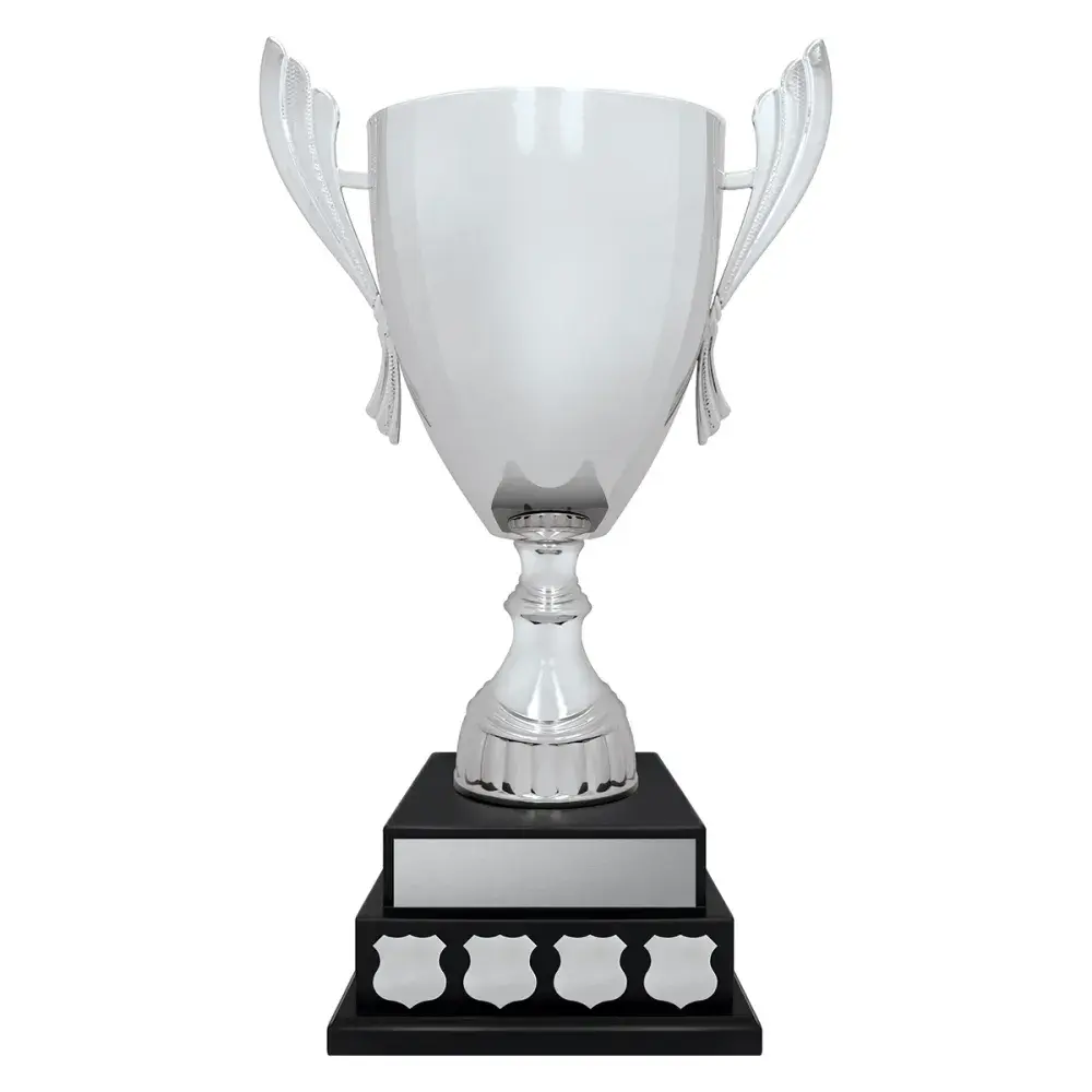 Standout cup perpetual features black finished tiered base in classic timber. Apply your engraving plate and perpetual shields to the sides of the base.