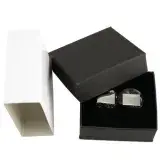 Sitting in a black moulded insert and presented in a plain black 2 part gift box in a white sleeve. Packaging Size: 83mm(h) x 77mm(w) x 31mm(d)