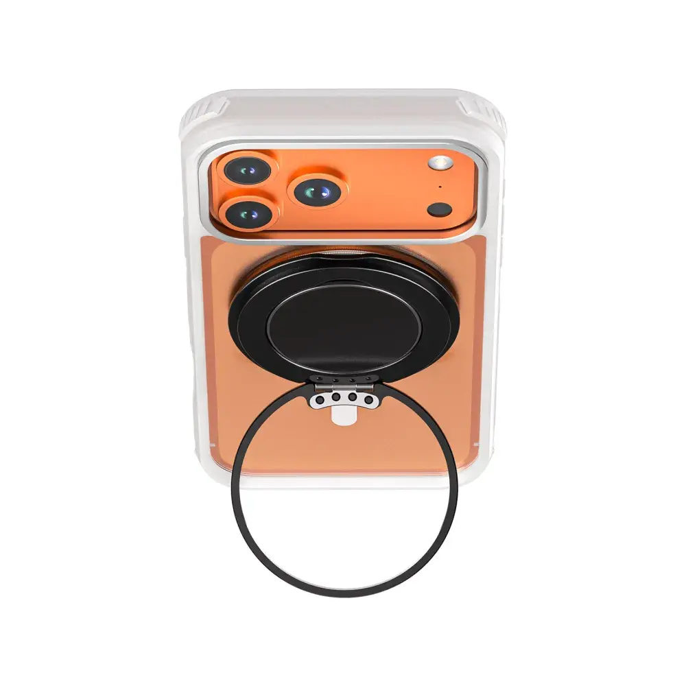 Magnetic (MagSafe) phone grip and stand for easy hold and display.