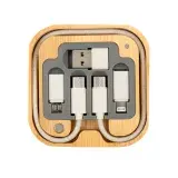 Power up in style with the Wander Eco Wireless Charger Set, a practical and stylish charging companion for work, travel, and everyday use. Housed in a natural bamboo case with a magnetic closure, this set combines sustainability with functionality. Inside, you'll find a high-performance Type C to Type C cable (60W fast charging with data transfer), along with Type A, Micro USB, and 8-pin adapters, ensuring seamless compatibility with multiple devices. For added convenience, the compact case securely stores all components within custom silicone moulds, keeping cables tangle-free and organised. The front panel provides a generous space for screen-printed branding, making it an excellent promotional gift or corporate accessory.