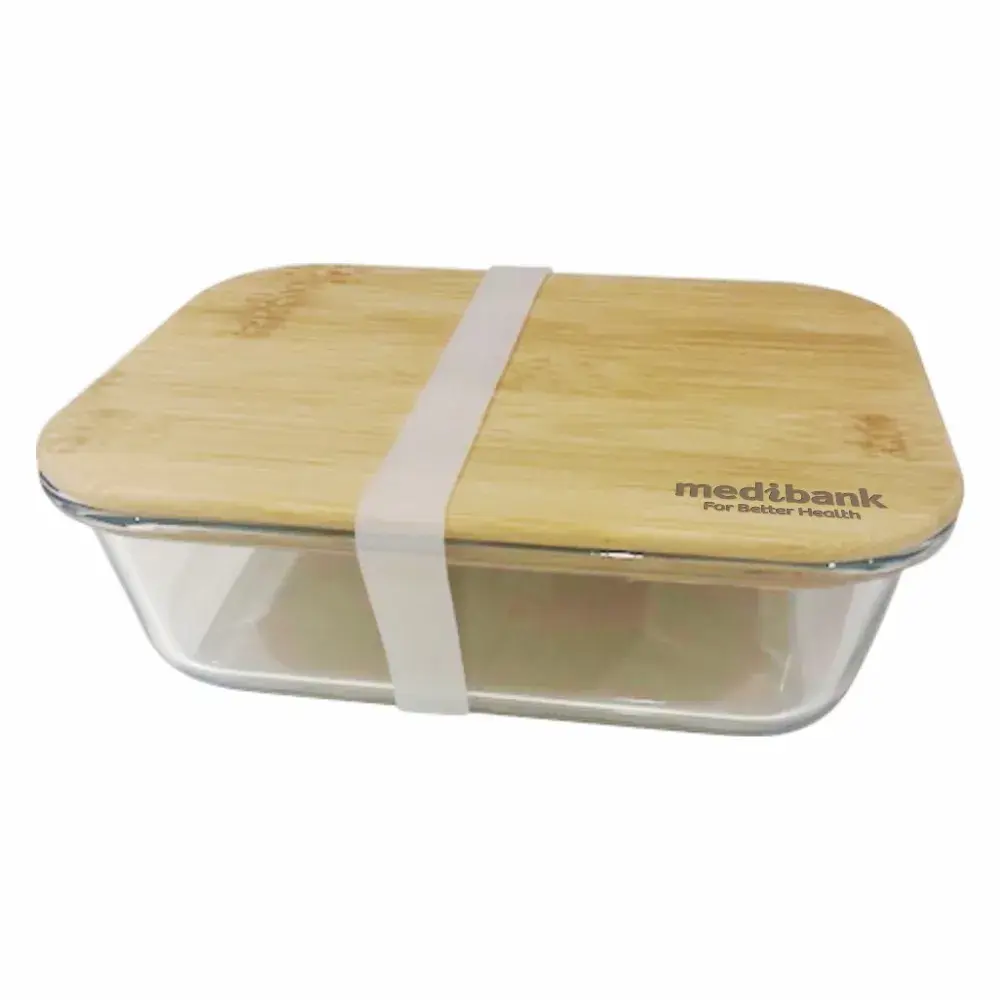 Custom Glass Lunch Box with Bamboo Lid - Clear