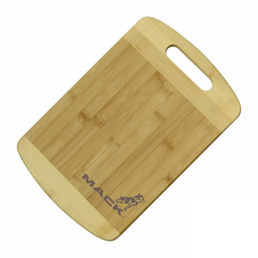 Bamboo serving board with cut out handle. Supplied in recycled kraft paper gift box