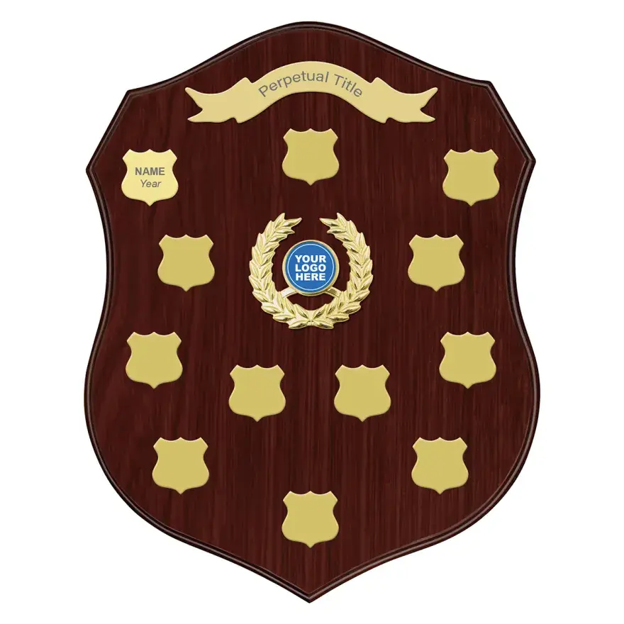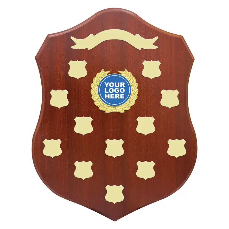 Olive Plaques offer budget plaque awards with classic walnut plaques and central space for your custom logo.
