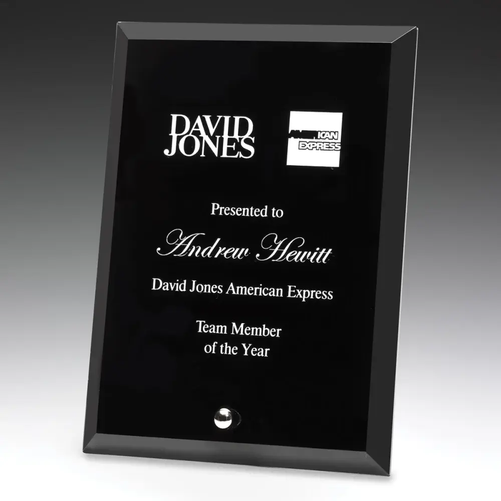 The Prime Glass Plaque series is a prestigious award option presented in a premium gift box. Black plaques available in 3 convenient sizes present a universal award to show off your engraving.