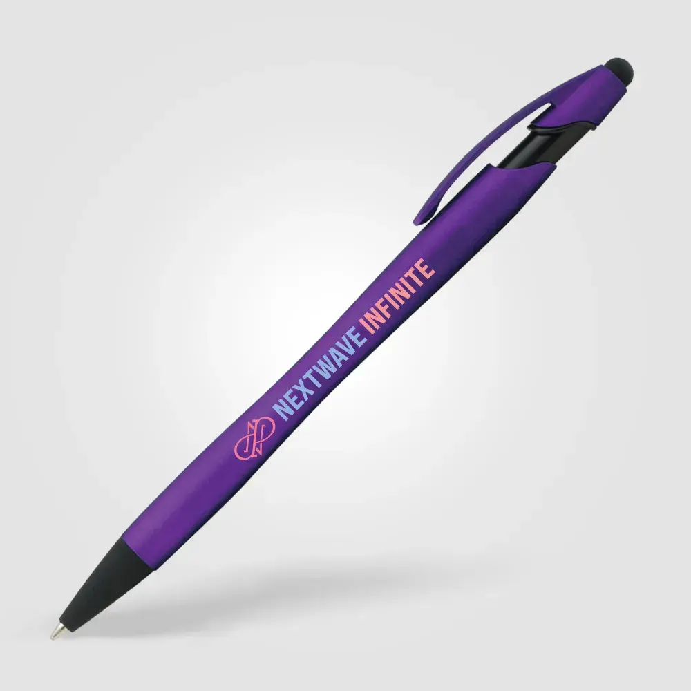 The La Jolla Softy Pen with Stylus is a sleek and elegant plastic pen designed for everyday use. Featuring trendy black trim and a soft-touch metallic rubberised finish, it feels great in the hand and looks stylish. This medium black ballpoint also includes a stylus at the top, creating the perfect 2-in-1 promotional gift. Personalise with your logo using ColourJet, our vibrant full-colour inkjet imprint technology.
