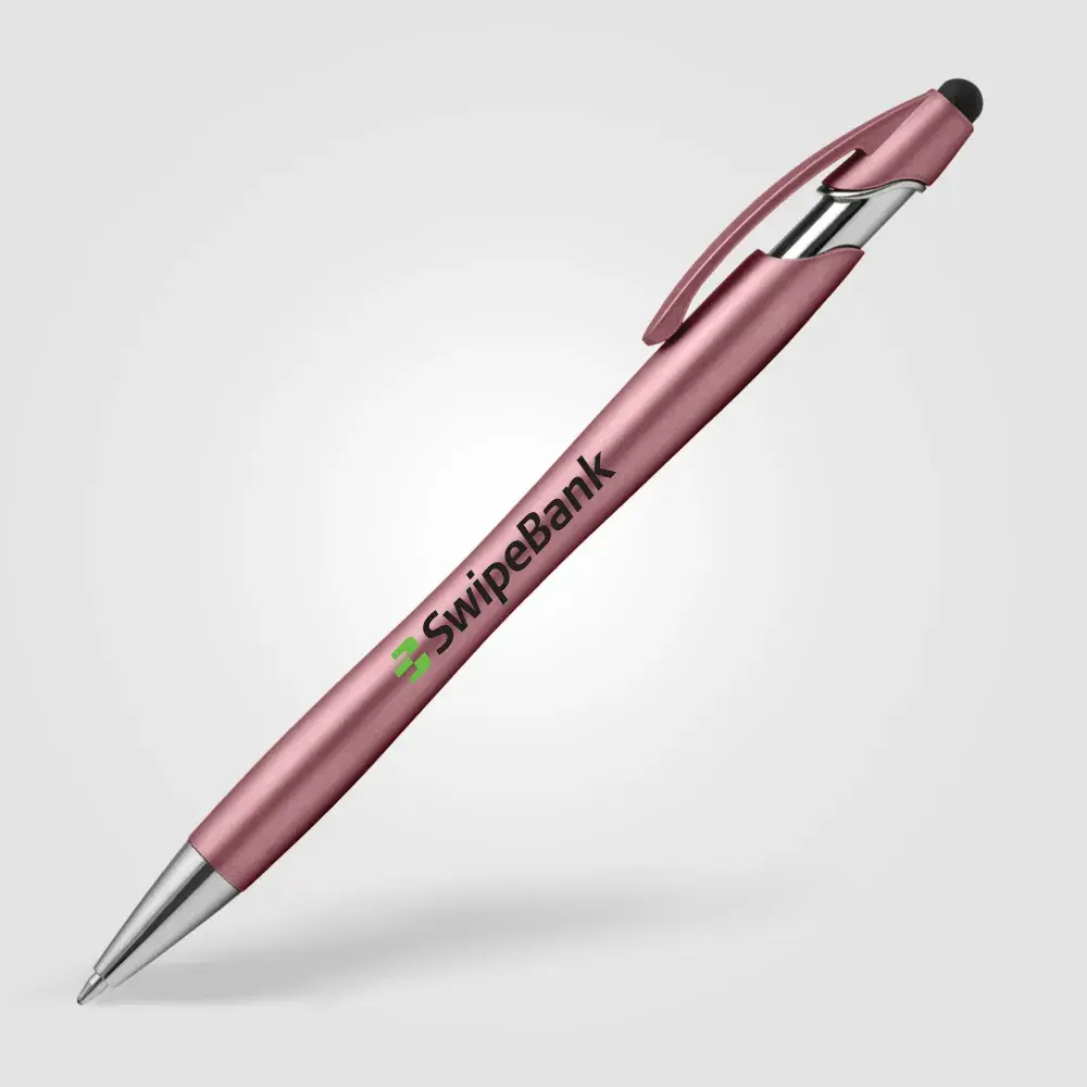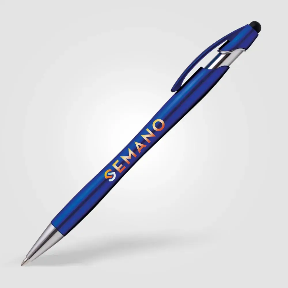 Grab some extra attention when you give away the La Jolla Stylus Pen to customers and prospects. This metallic pen with a stylus at the top is the perfect 2-in-1 advertising gift. It features a sleek metallic barrel, matching clip, polished chrome accents and a professional stylus. Best of all, you can customise it with a four line imprint that will pop against the fun, bright metallic barrel colours. Pick up a bundle today to have your customers thanking you for adding style and colour to their days!