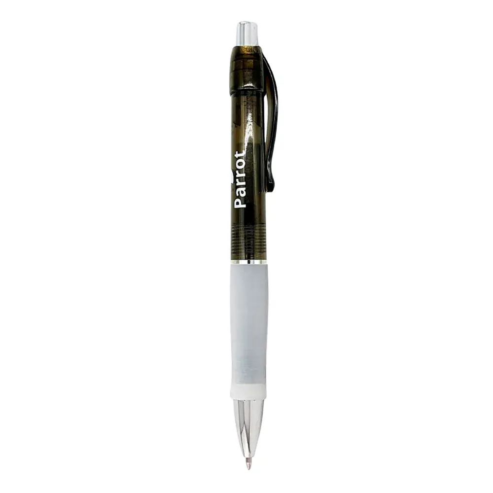 A refined writing tool with a translucent barrel and grip, accented by satin chrome-painted details. This sleek pen adds a touch of elegance to any collection and comes equipped with black ink for smooth, effortless writing.