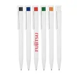 Emanating an image of resilience, the Uno High Gloss Ballpoint Pen evokes notions of quiet confidence with an accented tip that also blends sophistication. Available in gloss white with coloured accent and suitable for pad print, full colour digital print, and rotary screen print.