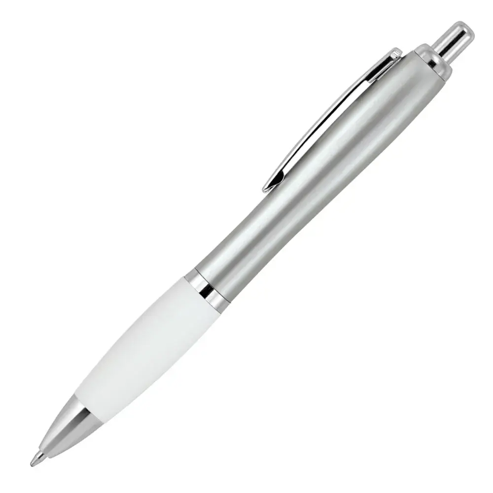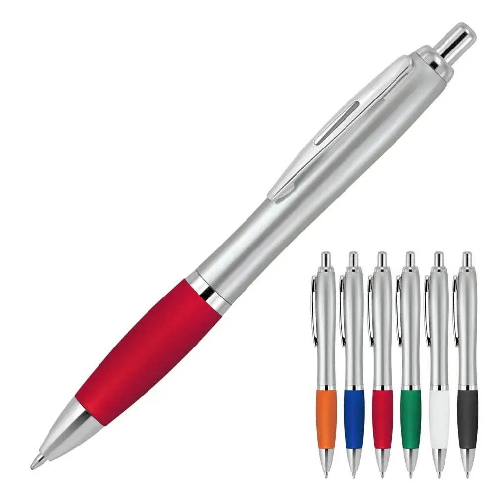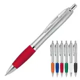 Custom Plastic Pen Ballpoint Silicone Grip Silver Cara