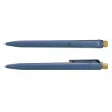 This push-action ballpoint pen is made from recycled ABS plastic and features a smooth matte barrel complemented by a natural bamboo pusher. The wide clip is designed to securely attach to notebooks, pockets, or folders, while 1000m of black Dokumental ink ensures reliable writing performance. An optional pen sleeve is available at an additional cost.
