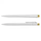 This push-action ballpoint pen is made from recycled ABS plastic and features a smooth matte barrel complemented by a natural bamboo pusher. The wide clip is designed to securely attach to notebooks, pockets, or folders, while 1000m of black Dokumental ink ensures reliable writing performance. An optional pen sleeve is available at an additional cost.