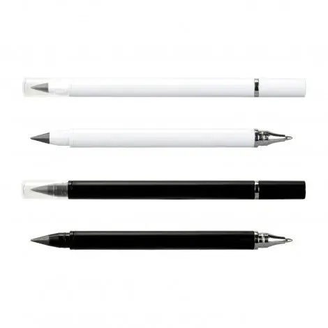 Plastic dual-tip pen featuring metal alloy tip and ballpoint pen