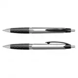 Retractable plastic ballpoint pen with a metallic barrel and a soft rubber grip. It has a blue refill with 1200 metres of writing ink and can be presented in an optional pen sleeve.