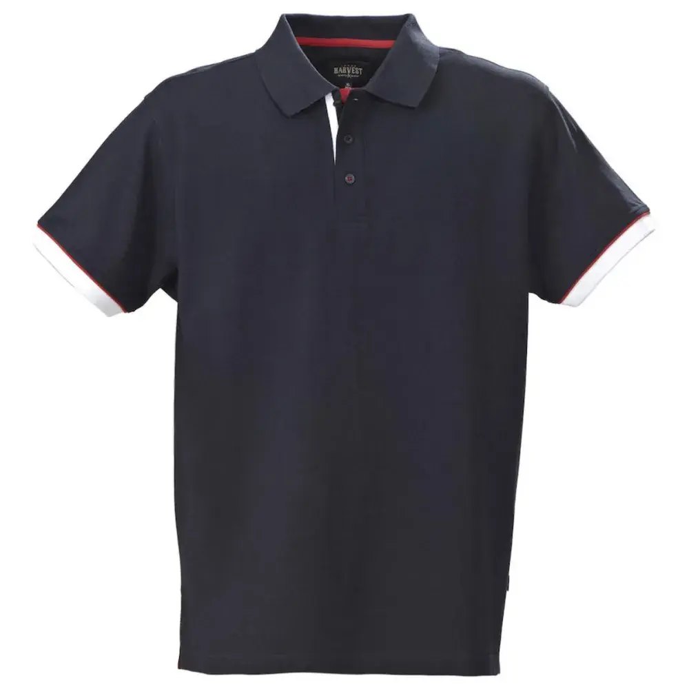 Navy features navy, red & white stripe at neck, cuffs & reverse collar.