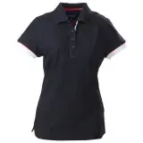 Ladies modern fit piqué polo with yarn dyed cotton. Contrasting tape at neck, placket and sleeve rib. Contrast colour on reverse side of collar.
