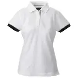 Ladies modern fit piqué polo with yarn dyed cotton. Contrasting tape at neck, placket and sleeve rib. Contrast colour on reverse side of collar.