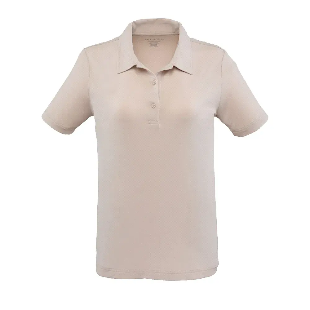 Trimark's IZU Everything Performance Eco Polo for Women showcases fabric innovation with stretch and antimicrobial properties for comfort and durability. This polo offers UV protection, anti-bacterial odour, snag resistance, and moisture-wicking capabilities, ideal for any occasion. Made from 85% recycled polyester certified by GRS, 10% lyocell, and 5% elastane, it combines sustainability with style, featuring a classic three-button placket with dyed-to-match buttons for a clean, modern look performance Polo.