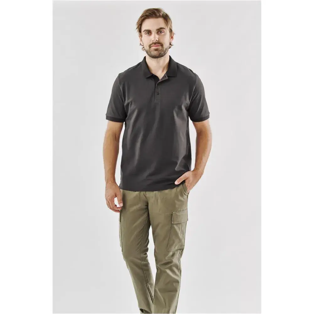 The Ferrera Polo is made from 94% sustainably sourced BCI Cotton pique for superior softness and comfort with 6% spandex to provide stretch and shape retention. UPF 50+ rated. Snag-resistant fabric improves durability and leaves the garment looking new wear after wear.