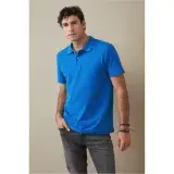 A soft single jersey polo shirt for men, with a pleasing piqué look, rib collar, and 2 horn look buttons.