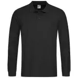 Soft single jersey long sleeve polo shirt for men, with a pleasing piqué look, rib collar, cuffs on sleeves and 3 tone-on-tone buttons.