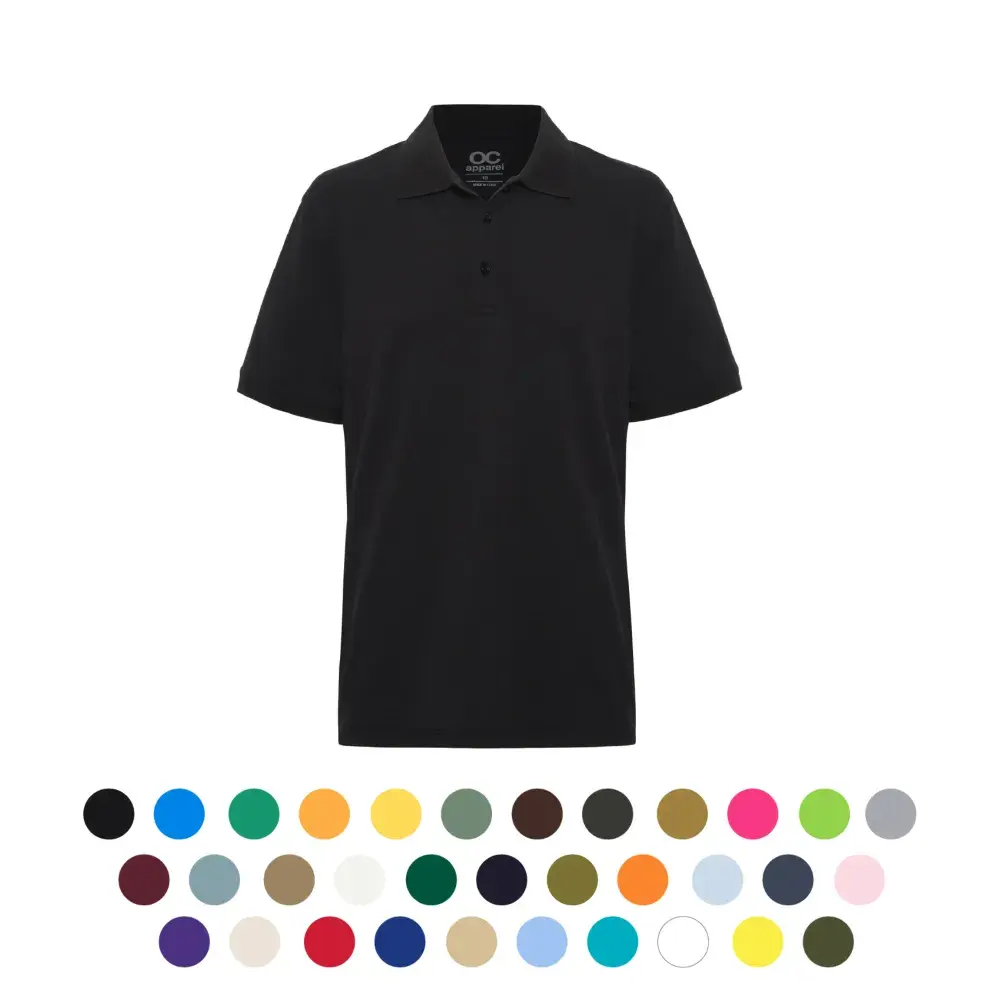 100% Cool Polyester Sports Interlock (155gsm): Lightweight, moisture-wicking, and breathable for all-day comfort. | Moisture-Wicking Technology: Helps keep you cool and dry during activity. | Quick-Drying & Easy Care Fabric: Designed for convenience and minimal maintenance. | UPF Protection: Shields against harmful UV rays, making it ideal for outdoor wear. | Slim Fit: Offers a sleek and professional silhouette. | Button Placket Neckline: Classic polo design for a polished look. | Knit Rib Collar: Enhances durability and maintains shape over time. | Classic Black Styling: A versatile and timeless option for any occasion. | Branding Options: Ideal for Embroidery, DTF (Direct to Film), DTG (Direct to Garment), Screen Printing, and Silicone Label, ensuring bold and long-lasting customization.