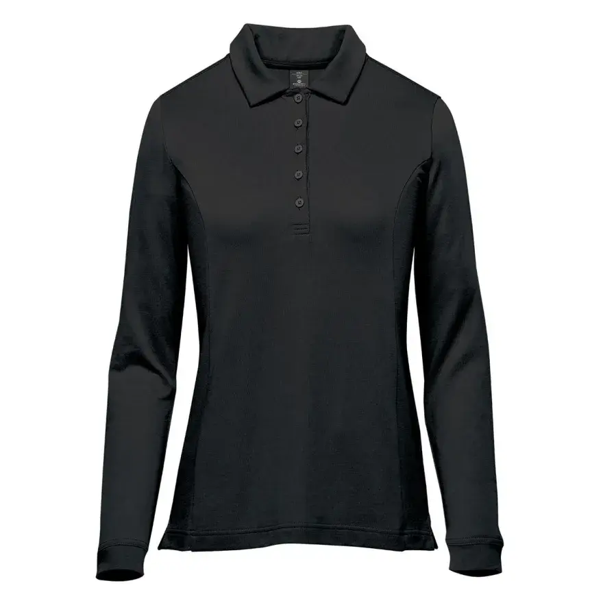 The Nevada Long Sleeve Micro Pique Polo is made from 100% certified cotton for superior softness and comfort. Self-fabric collar with collar stays help keep this collar under control and in shape, even after washing.