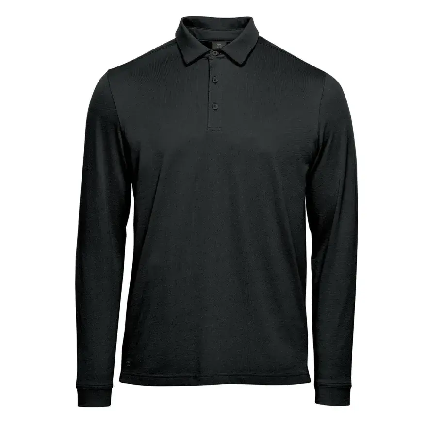The Nevada Long Sleeve Micro Pique Polo is made from 100% certified cotton for superior softness and comfort. Self-fabric collar with collar stays help keep this collar under control and in shape, even after washing.