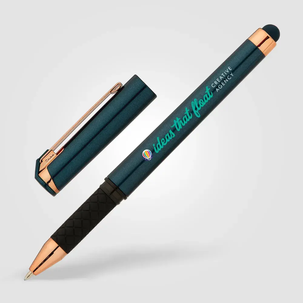 The Islander Pearl Rose Gold Stylus Gel Pen combines top customer favourites: gel ink, a barrel in classic and jewel tones, and a premium rose gold trim. When you remove the cap, the pleasant surprise of a rubberized basket-weave grip is revealed. With rose gold trim and accents, plus a helpful stylus, this pen will make a great impression.