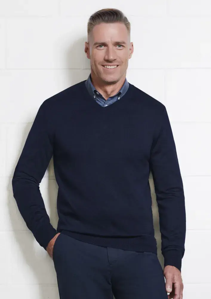 Mens classic fit V-neck with relaxed ribbed cuff and hem that’s not too tight or loose