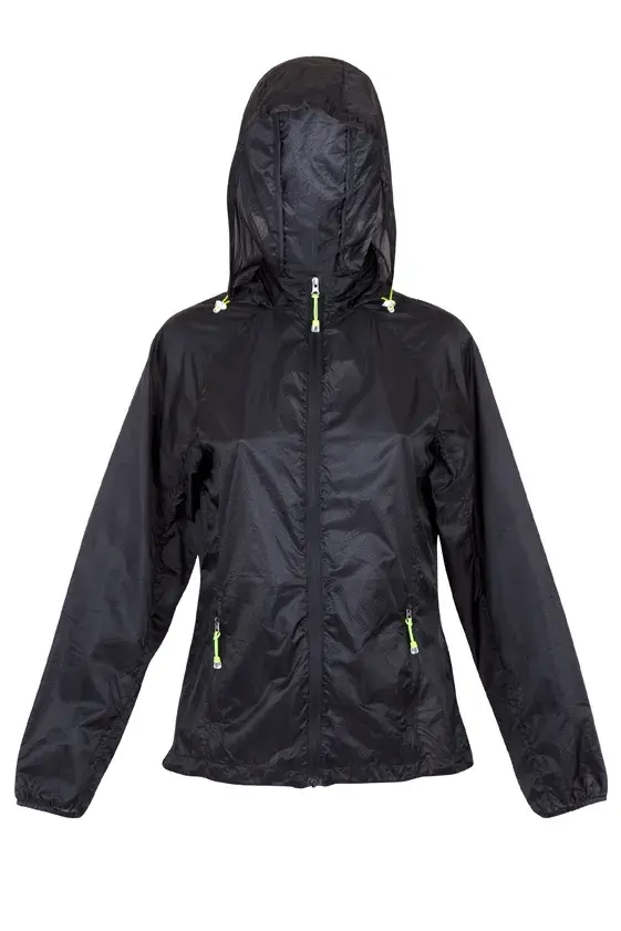 Description 30gsm 100% nylon UPF 50+ Shower proof Hood that can be sealed away Self Contained bag for easy packaging Multipurpose jacket that can be used for beach, training and general use