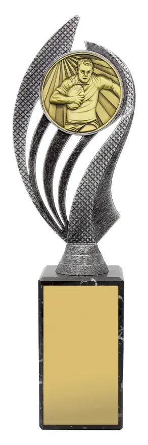 Striking design for your league or union trophies - pair of sizes available - that feature prominent boot and ball elements and finished in classic antique silver and gold colours.
