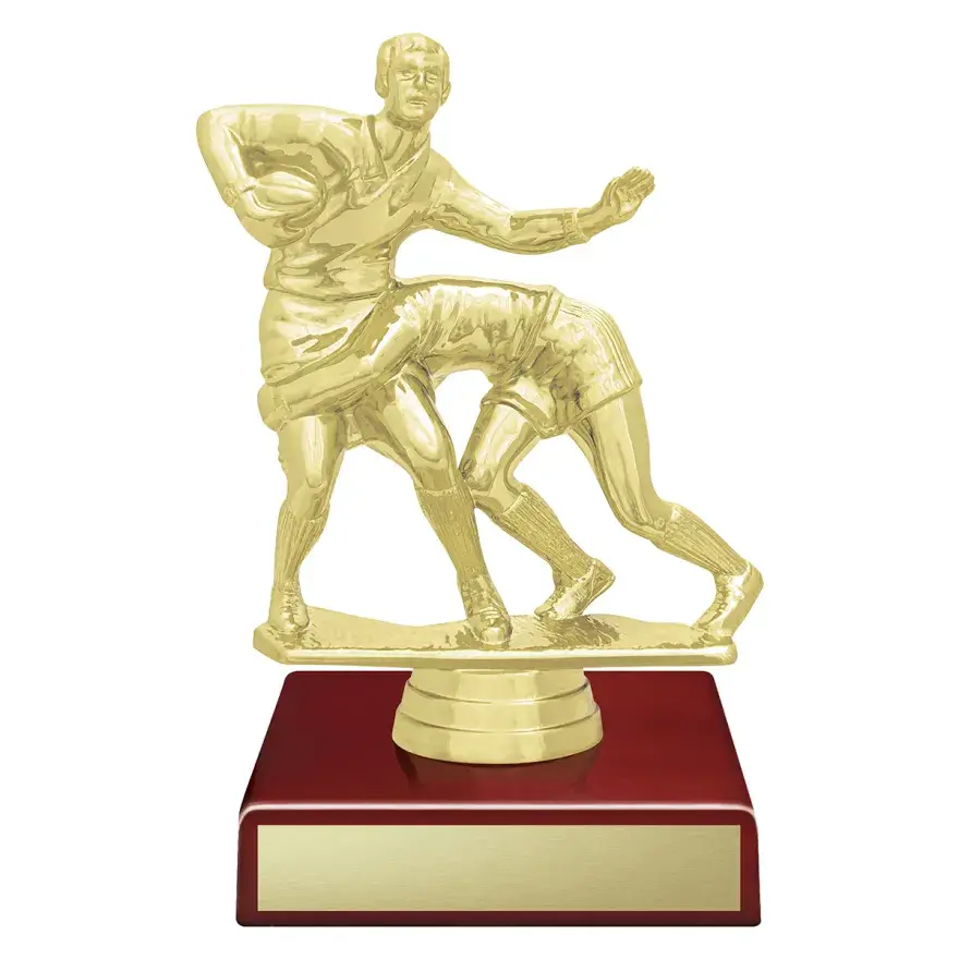 Dynamic silver backdrop for this trophy series frames the detailed player captured in action. Finished in antique gold, this player series is available in male and female and in multiple sizes to suit your award needs. Excellent choice for best player trophies for your team or club.