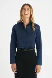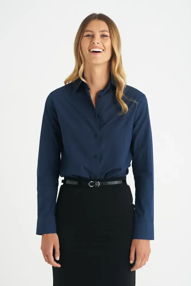 Plain collar, Gradual curved hem, Rounded Cuff, Buttons dyed to match