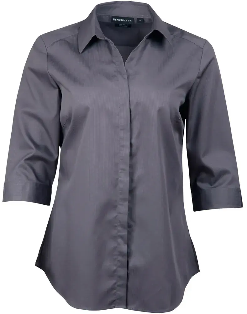 Custom Ladies' Dobby Striped Taped 3/4 Sleeve Shirt Storm Grey