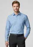 Modern collar, chest pocket, twin back pleats and adjustable cuff