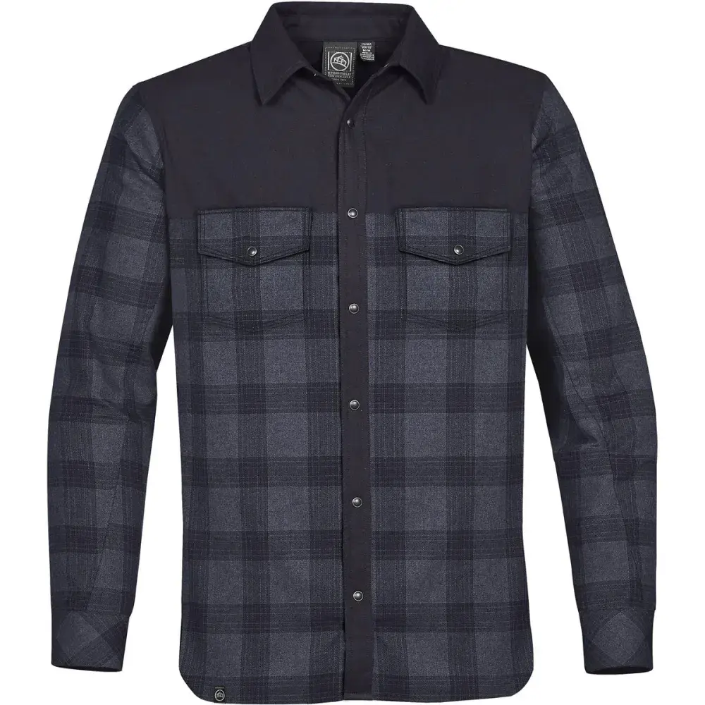 Classic plaid design combined with solid panels, highlights this fleece-lined, breathable cotton-blend thermal shirt. Featuring snap pockets, centre front and cuff closures for added styling and easy use.